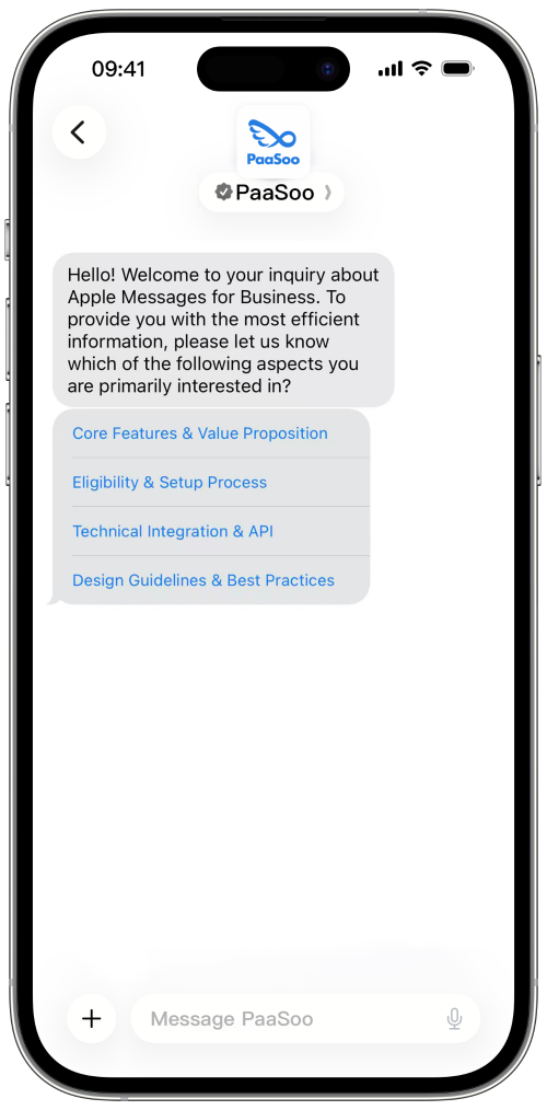By integrating with native Apple entry points such as Apple Maps, Safari, Siri, and Message Suggest, and supporting non-native channels like links, QR codes, email, and website placements, we enable customers to easily discover and start conversations with your brand wherever their journey begins.