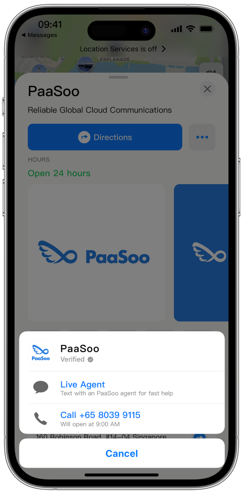 Let users discover your business and start a conversation directly from Apple Maps listings.