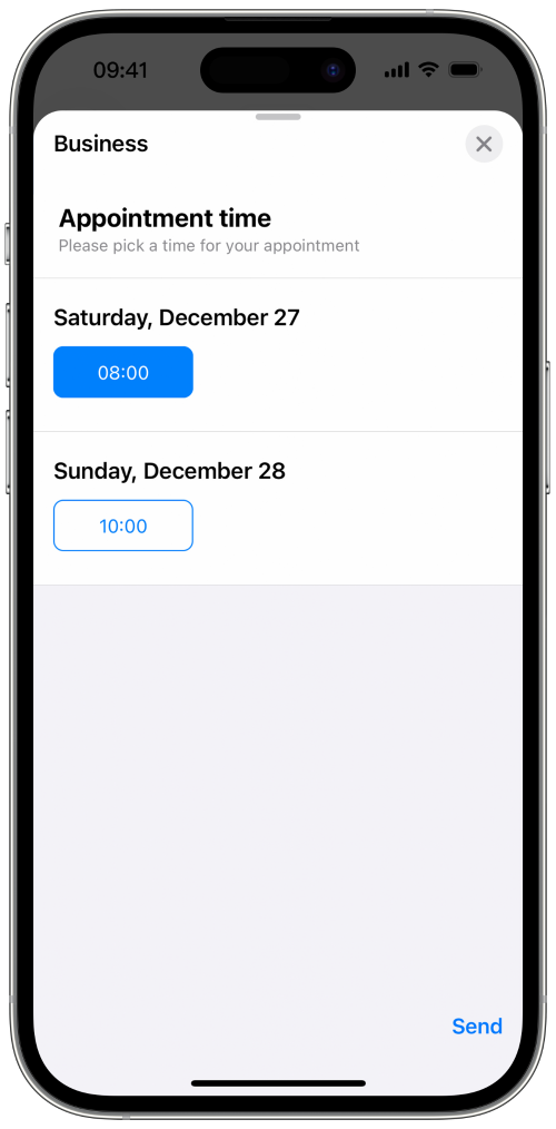 Use List Pickers, Time Pickers & Rich Links to guide customers step by step—letting them inquire, choose, and decide, all within Messages.